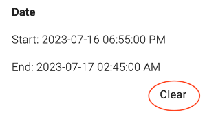 Clicking the Clear button to the bottom right of the displayed dates will remove the highlighted region to start over.
